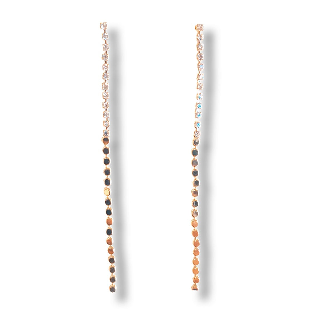 Sparkle with style when you adorn these dainty Krista Sparkle Strand Earrings. Features a drop stud earring made up of dazzling cubic zirconia stones that drop linear from your lobe and end with plain flat beads. Can be worn alone or stacked with other Noellery earrings to accentuate your outfit, whether dressed up or down!
