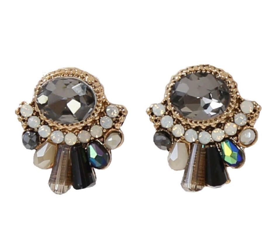 Compliment your beauty with these Lily Cluster Studs! Features a large oval crystal centerpiece with an outline of small crystals right underneath it. And below are an assortment of different beads and crystals to give it that chandelier look! These make the perfect pair of earrings to be worn to any occasion and can be matched with any outfit you chose!