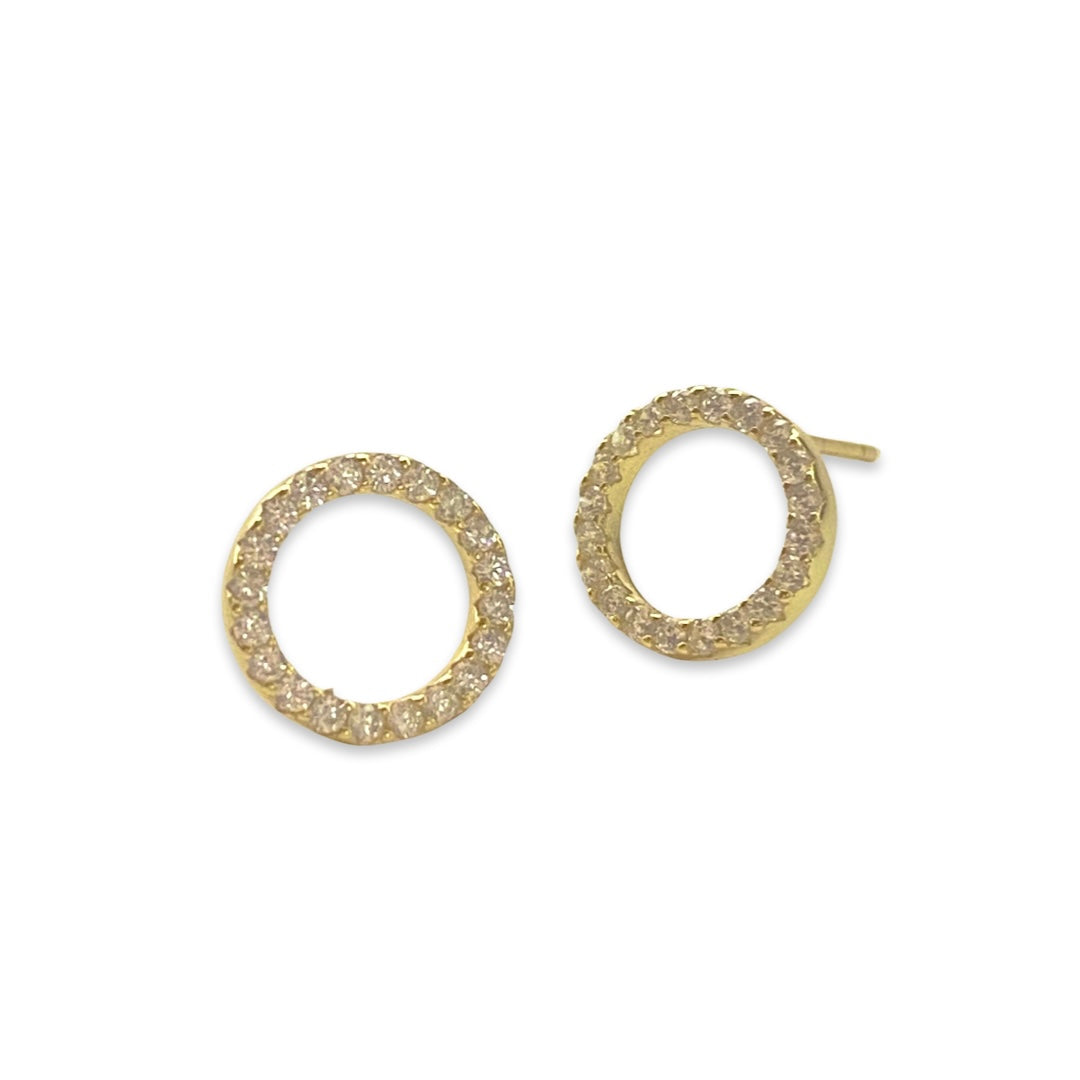 Sparkle and shine with Noellery! Circle studs are perfect for everyday wear. A circle has no beginning or end, so represents forever or infinity. Features a halo paved with clear sparkly cubic zirconia stones. Minimal and darling for the modern woman.