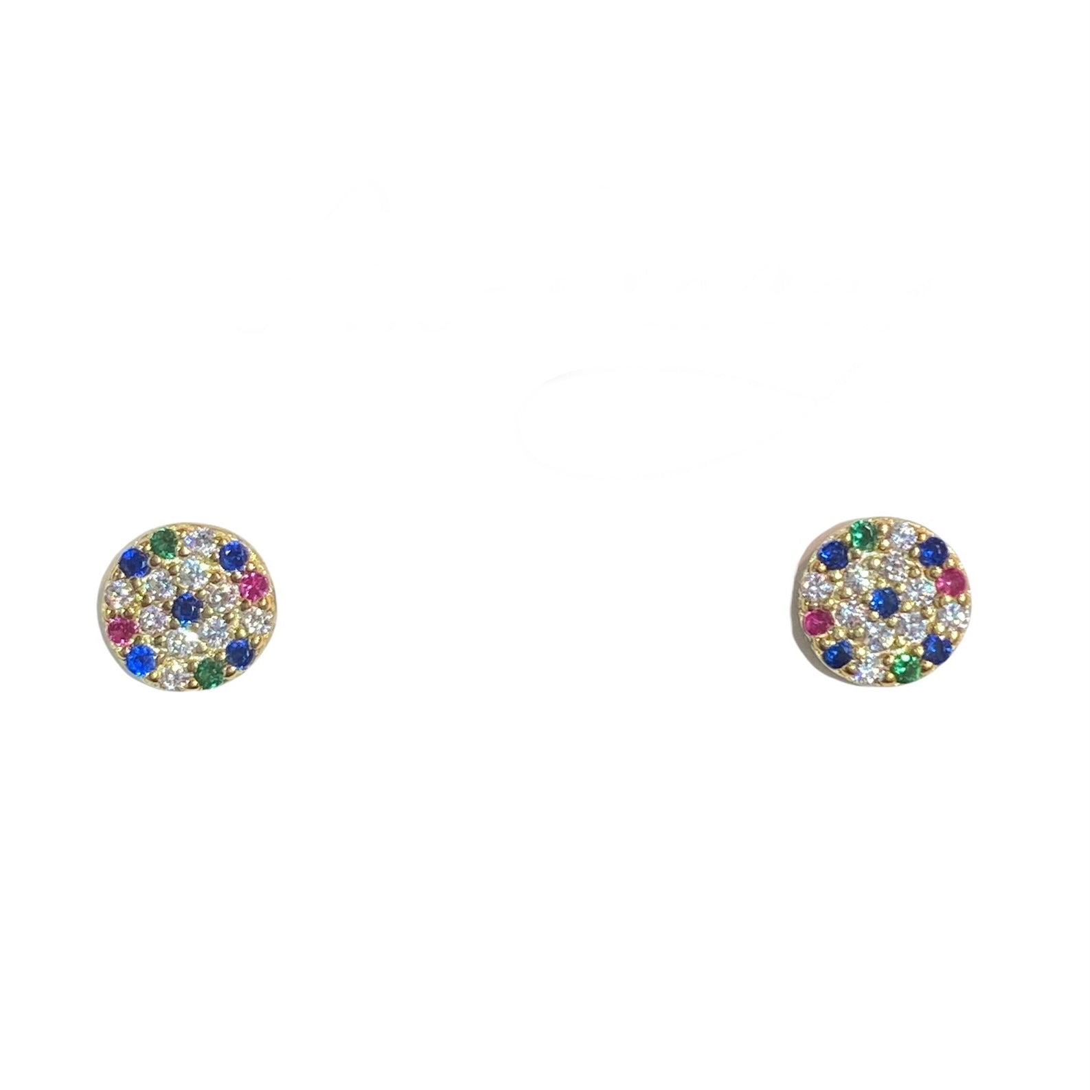 Add our Multicolor Evil Eye Studs to your earrings collection! Features a disc stud that is paved with multicolored cubic zirconia stones. Great as a gift for that special loved one and can be stacked with other Noellery earrings to add more dazzle to your ear!
