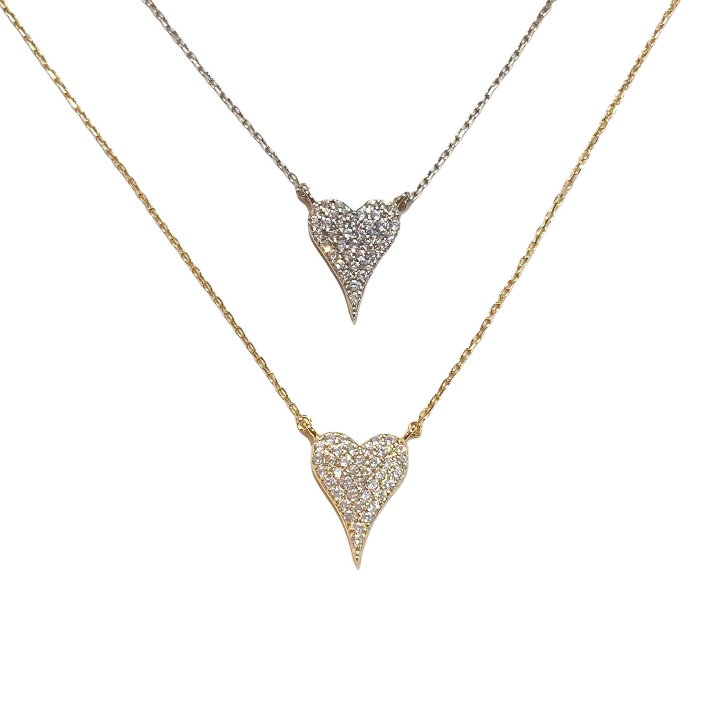 Gift your special someone our Heart Necklace for any occasion! Features a heart pendent that is paved with sparkling clear cubic zirconia stones that hangs from a fine sterling silver chain. Add some more love and find other Noellery necklaces to layer it up or match it up with our heart earrings!