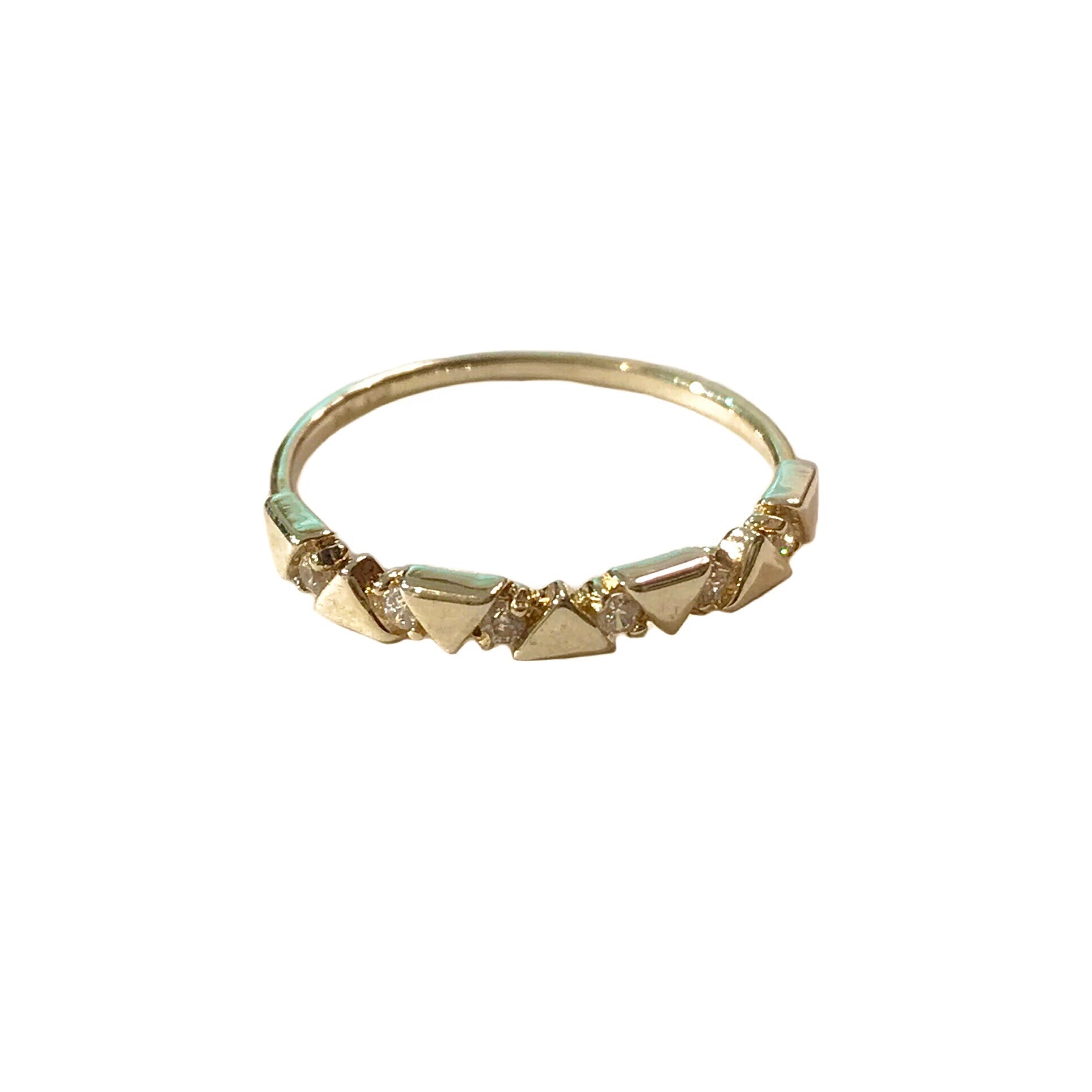 Get stylish and adorn this unique Noelia Triangle CZ Ring! Features a shiny sterling silver band that transforms into a plain triangle design in the front and has small cubic zirconia stone bezels in-between. Take it a step further and let your heart direct you to other rings that can stack well with it to add more sparkle to your hands!