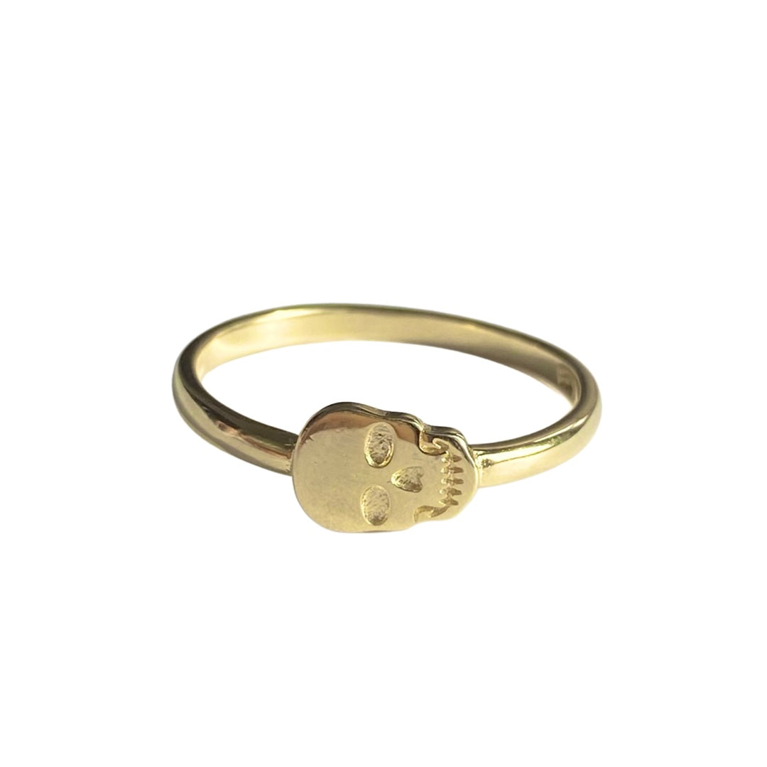 Get chic with our Noellery Skull Ring. Features a thin sterling silver band with a sideways skull head figure in the center. This ring makes a great addition to your ring collection and can be worn as an everyday accessory!