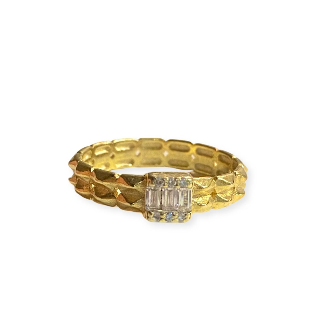 For the chic and modern women, style your hands with our Noellery Baguette Spiked Ring! Features a well crafted spiked sterling silver band design that is centered with baguette and round cut cubic zirconia stones for a little sparkle. A charming ring that looks great worn alone or stacked with other eye catching Noellery rings that suit your style!