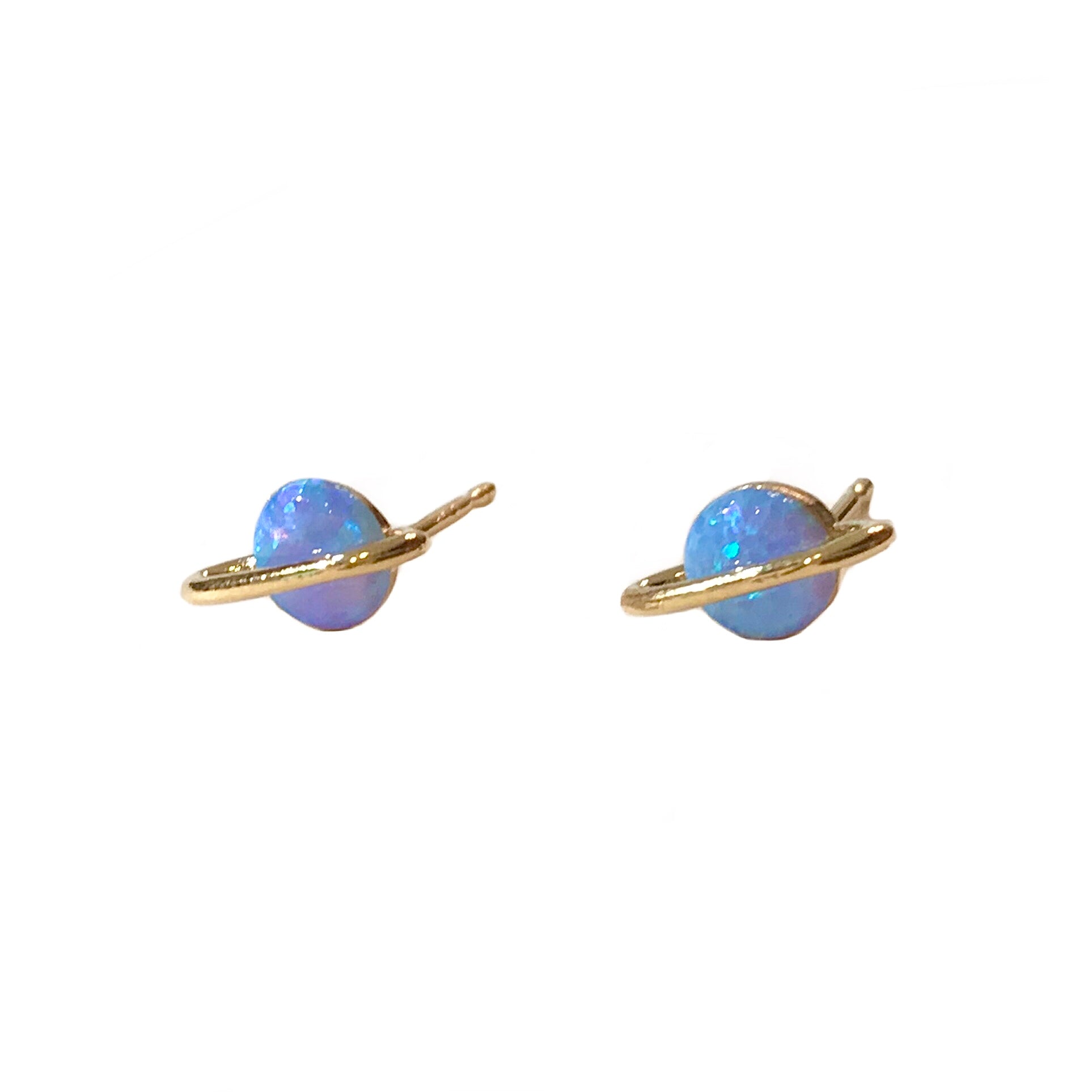 These Opaline Saturn Earrings are out-of-this-world dazzling and perfect for the earring stack every fashionista craves! Features a round opal stud with a shiny band that wraps around it. Planet Saturn represents strength and organization, and is believed to bring the wearer order and structure in one’s life. Worn alone or stacked, this shimmering Saturn stud is perfect for everyday wear and makes a meaningful gift to your loved one!