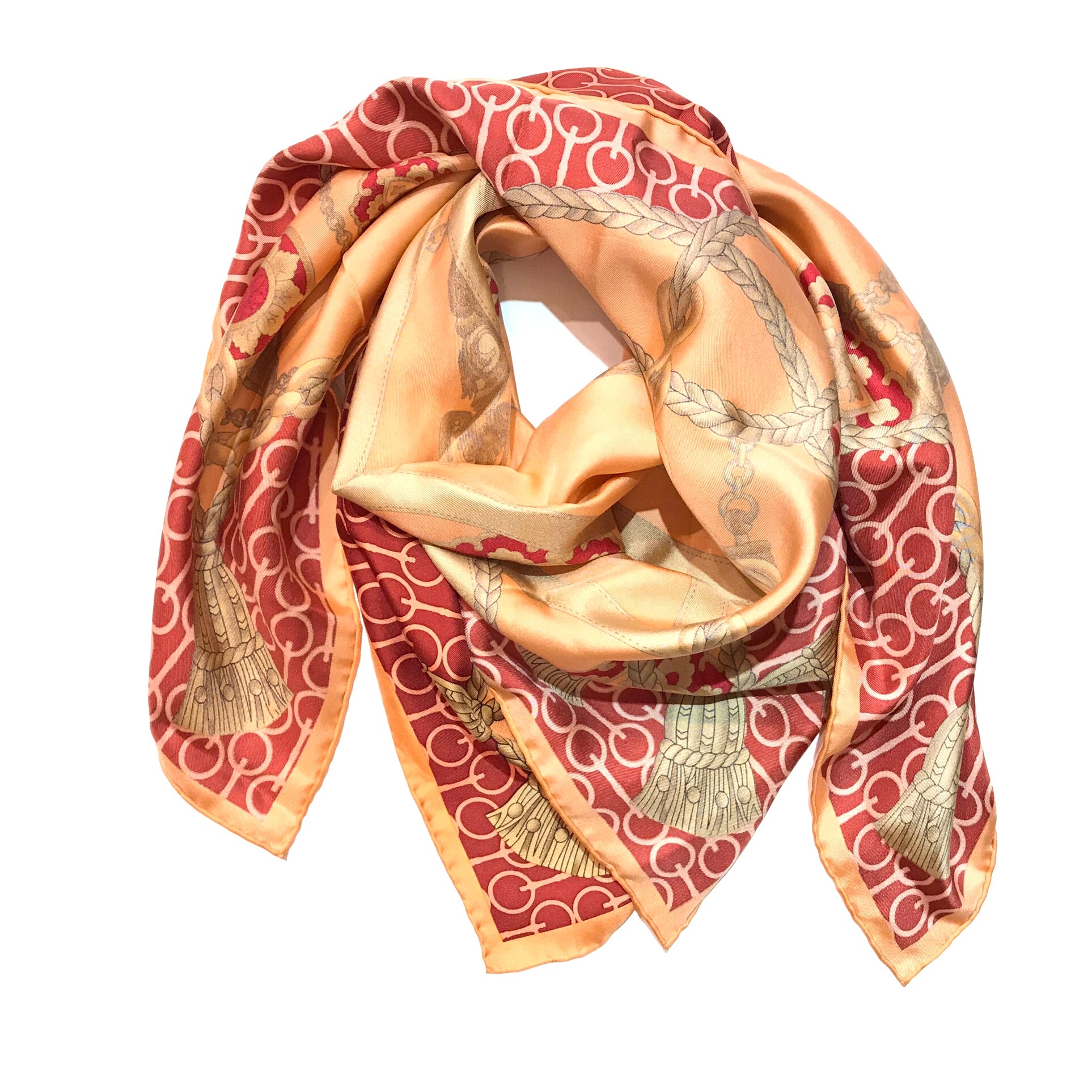 Add a sophisticated accent to your outwear or outfit with this gorgeous silk scarf. It is super versatile and you can wear it around your neck, wrist, or tie it onto your handbag. You can dress it up or down to be both an urban or elegant accessory. A great way to add a touch of playful color to your look this season!