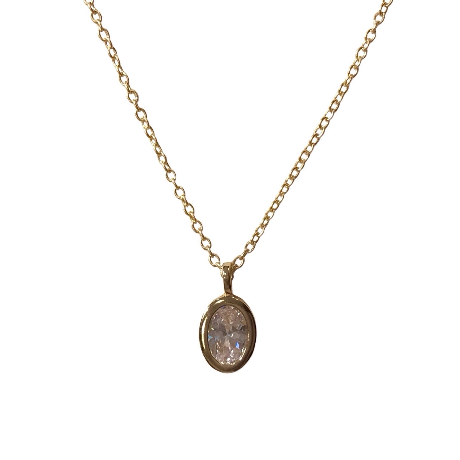 A classic staple to your every day necklace layer, slip on our darling Oval Birthstone Necklace today! Features an oval shaped cubic zirconia bezel pendant that hangs from the dainty sterling silver chain. A simple piece that adds charm to any necklace layer, but can be worn solo for a minimal look!