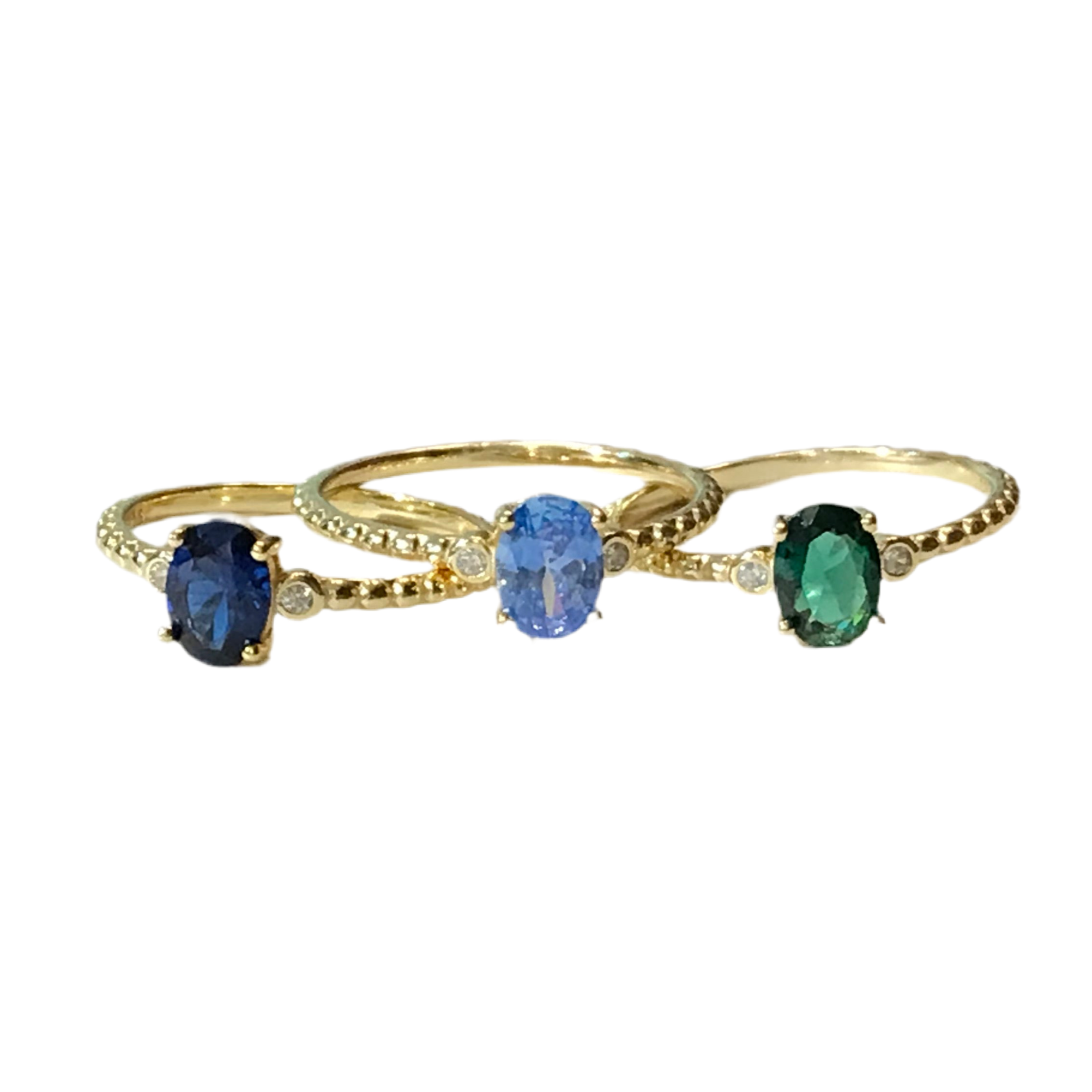 A classic and dainty statement ring that will sparkle with every turn of your hand, slip on our darling Oval Twist Birthstone Ring today! Features an oval cubic zirconia stone set in a prong setting and is flanked by two small round bezels. The twisted band gives it a touch of elegance without taking too much attention from the dazzle. Can be worn alone or stacked with other Noellery rings, gift it to yourself or a loved one today for any occasion.