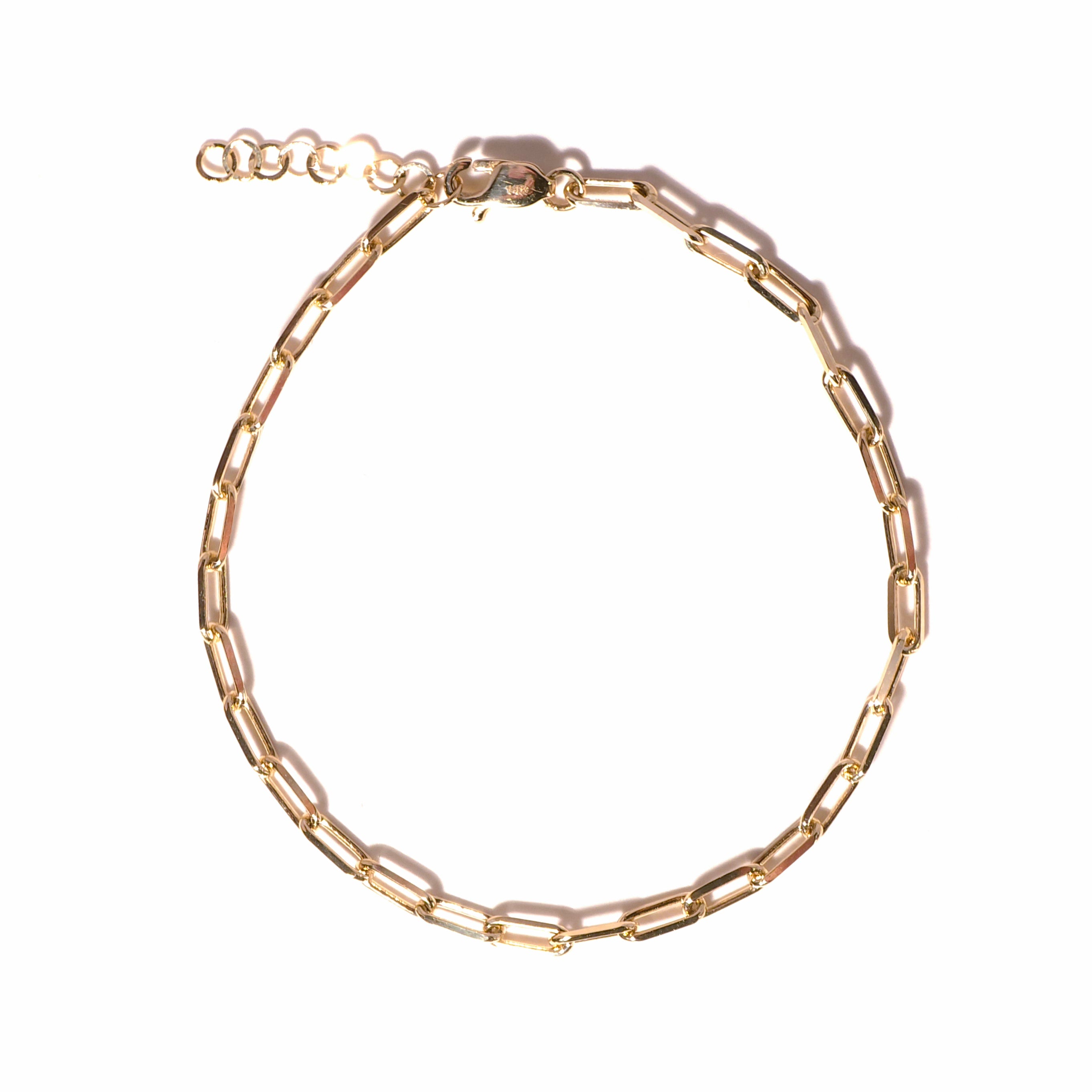 A trendy and modern piece to wrap around your wrists. Handcrafted in 14k solid gold, our delicate paper clip chain will be your go-to accessory that can be worn everyday, rain or shine. A chic bracelet that can be worn alone or styled together with other dainty pieces.