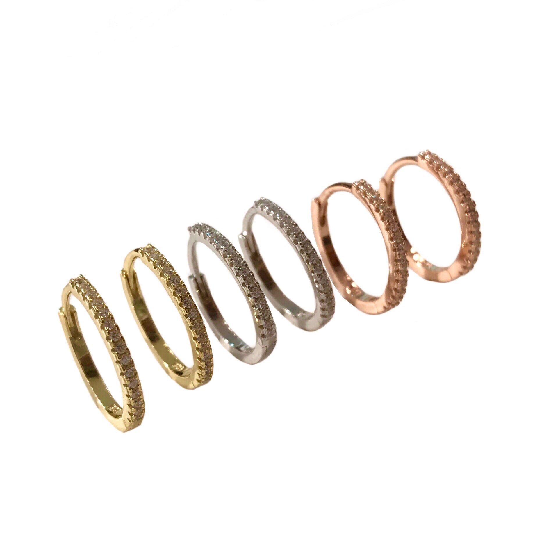 Just the everyday accessory to adorn on your ears, our Pave Huggies will fit right into your earrings collection! The 0.65” huggies are partially paved in cubic zirconia stones and will shimmer under the spotlight! With a clasp backing, it will rest securely in your ear without the fear of them falling off! Can be worn alone or stacked with other Noellery earrings for those with multiple piercings!