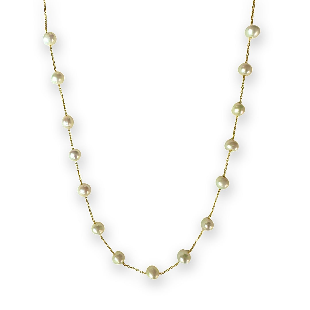 An elegant everyday necklace that can even be worn to special events, our Pearl Station Necklace will add a charming touch to your outfit! This lightweight necklace features pearls that are all linked together with a fine paper clip chain. Rests securely around your neck with the lobster clasp.