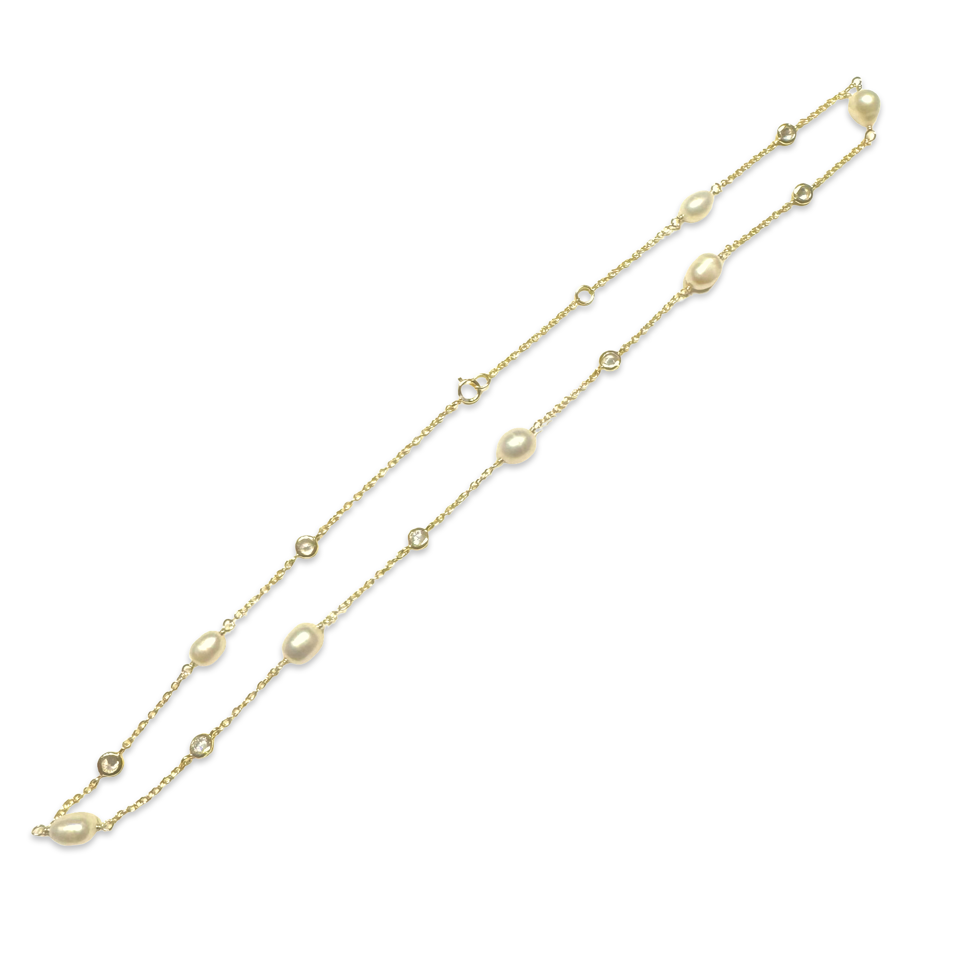 Add our Pearlea Bezel Station Necklace to your layers to create that elegant and gorgeous look! Features a sterling silver chain with pearls and sparkly bezels all around. Makes a great everyday necklace whether worn alone or with other Noellery necklaces.