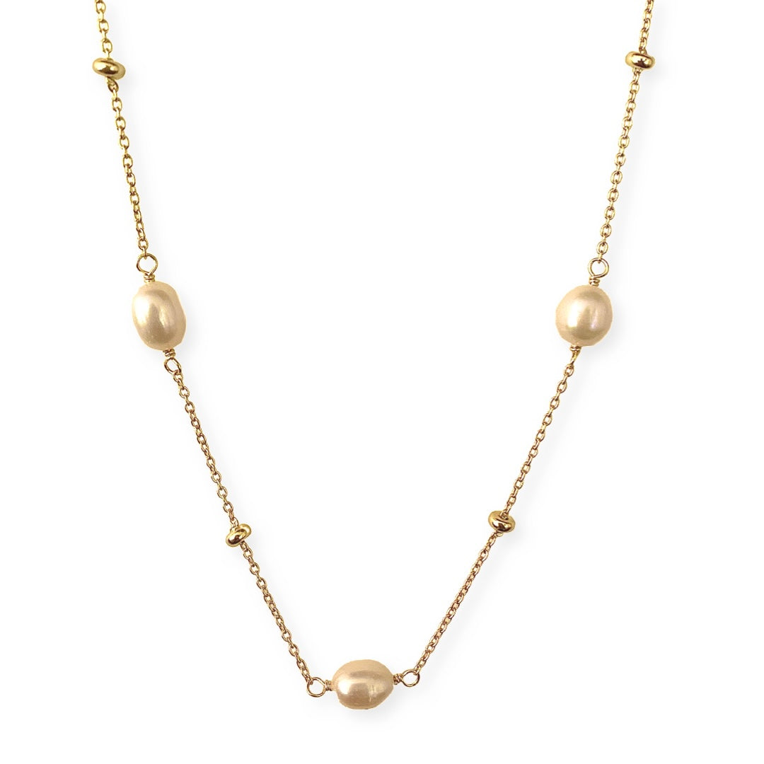 Add our Pearlea Pearl Station Necklace to your layers to create that elegant and gorgeous look! Features a sterling silver chain with pearls and metal beads all around. Makes a great everyday necklace whether worn alone or with other Noellery necklaces.