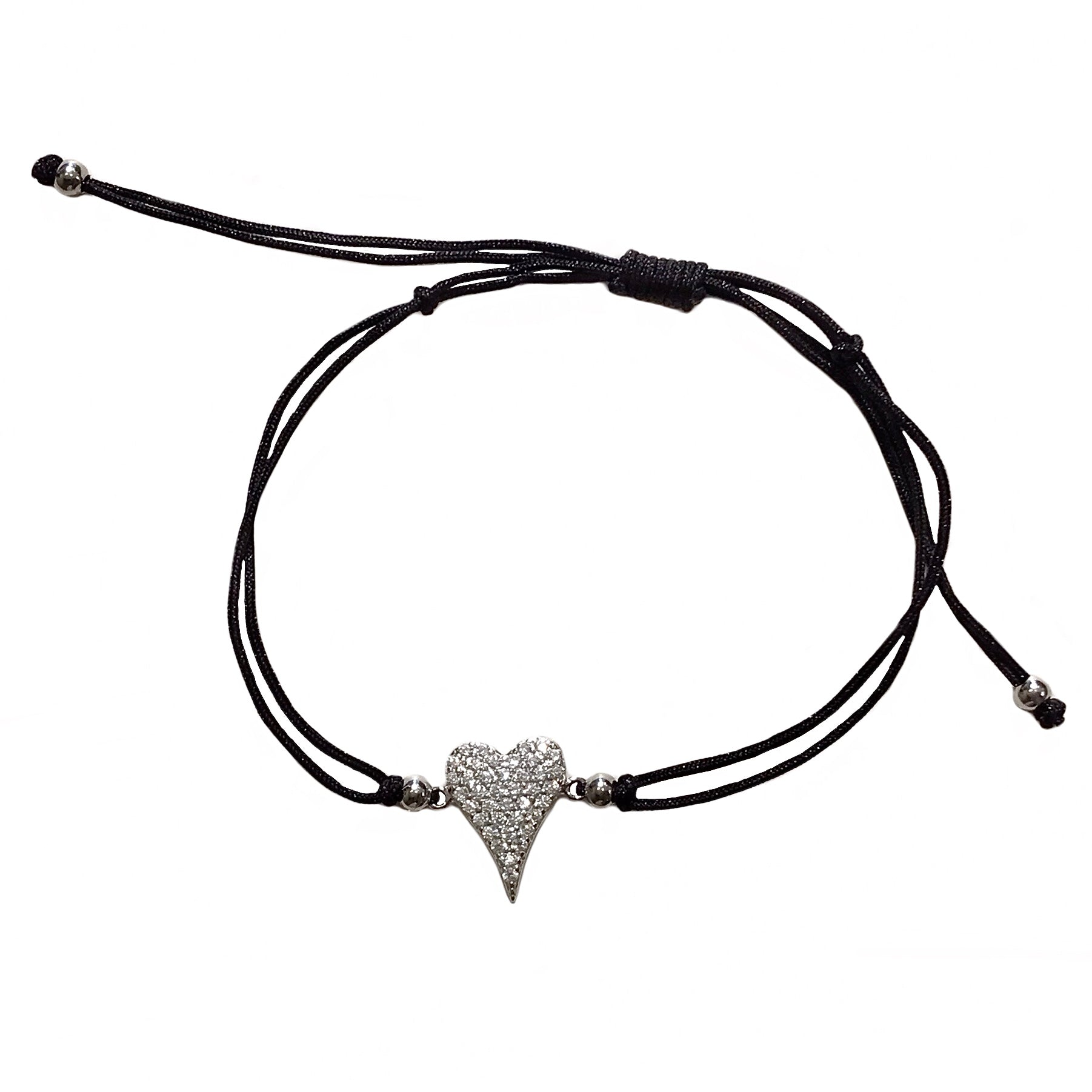 Slide on our Pointy Heart Black Thread Bracelet today! Features a tiny heart pendant that is micro paved with clear cubic zirconia stones. Makes a thoughtful gift for your loved one on any occasion. We recommend stacking this bracelet with other Noellery bracelets to create a more dramatic look.