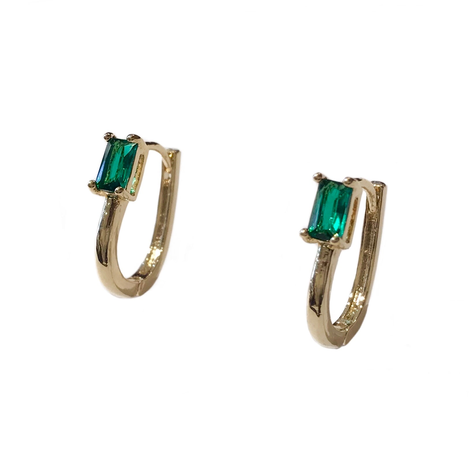 A simple accessory to add a little sparkle to your ears, add our Oval Baguette Huggies to your jewelry box to fill your jewelry-lover heart! Features a plain huggie hoop with a baguette cubic zirconia stone held in a prong setting. Can be worn by itself or stacked with other Noellery earrings to give your ears more dazzling charm!