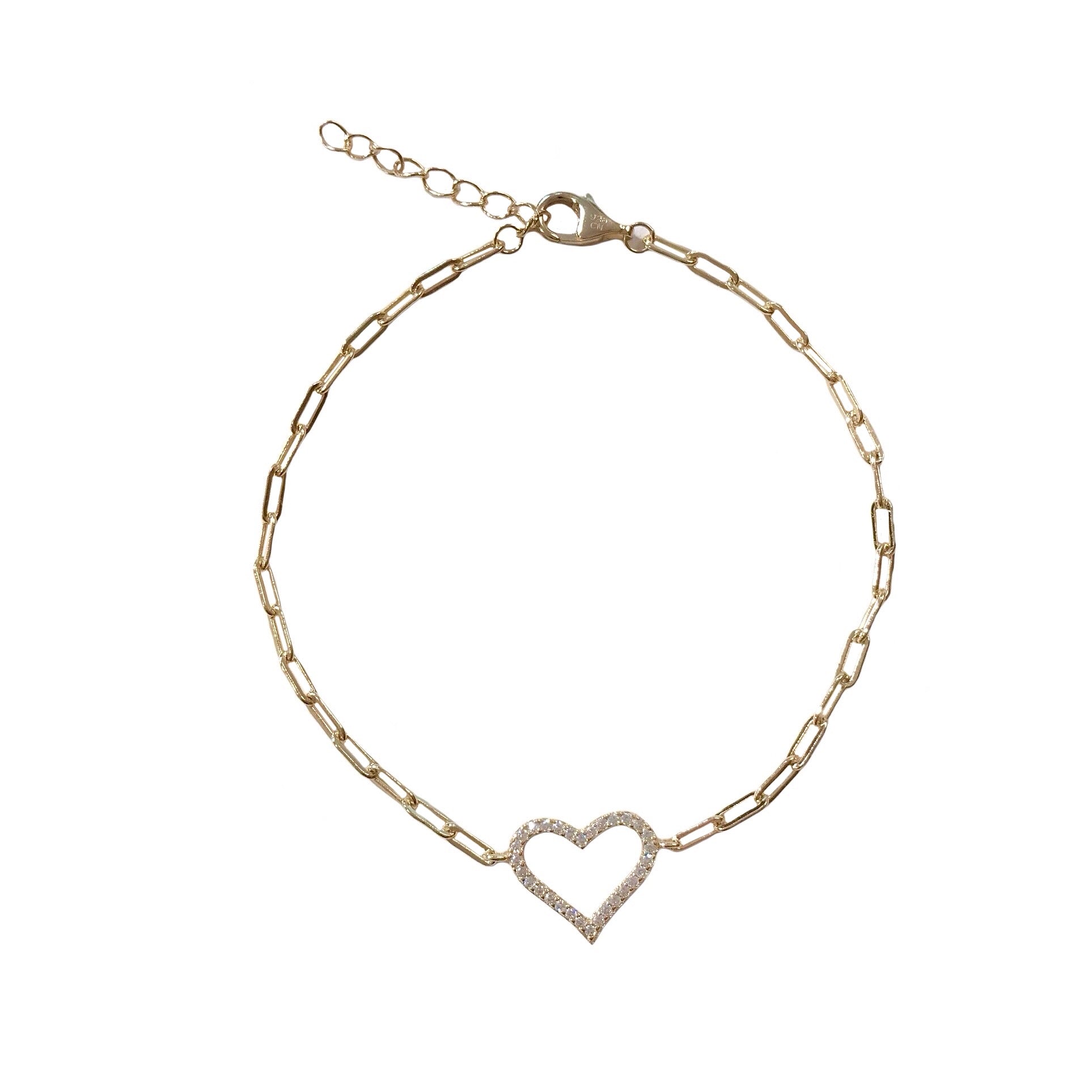 Accessorize your wrist with our Sparkle Heart Paper Clip Bracelet with a colorful setting. This bracelet has heart shaped center piece with cubic zirconia stones that will make you sparkle and a paper clip body to the bracelet. The heart represents Love and paper clip links represents the connection.