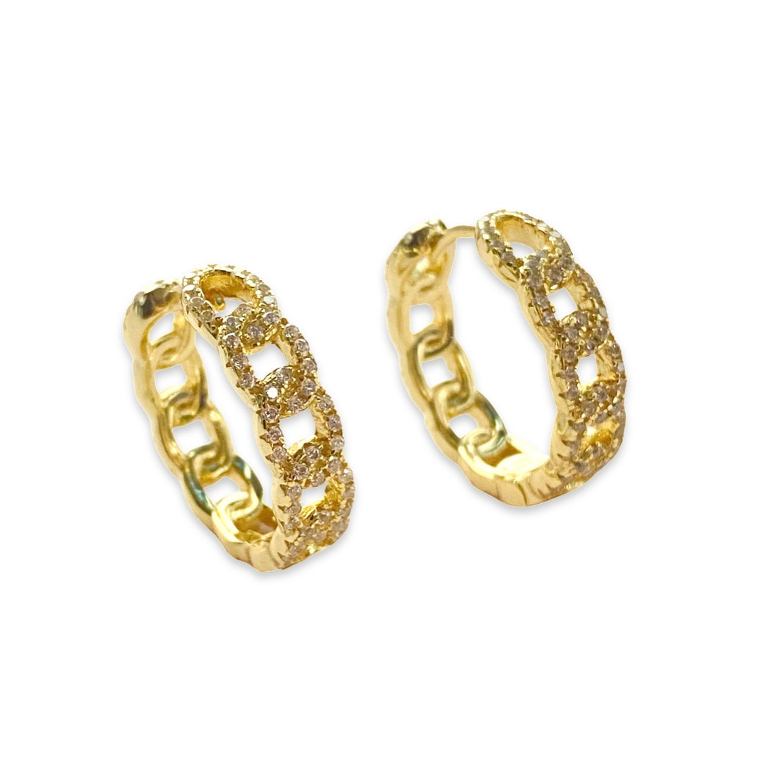 Sparkle throughout the day with Noellery by throwing on our trendy Sparkle Cuban Chain Huggies! These Cuban chain huggies are paved with cubic zirconia stones all around, making your ears shimmer with every step you take! Lightweight and great for everyday wear, stack these huggies with other Noellery earrings to add more sparkle to your outfit!