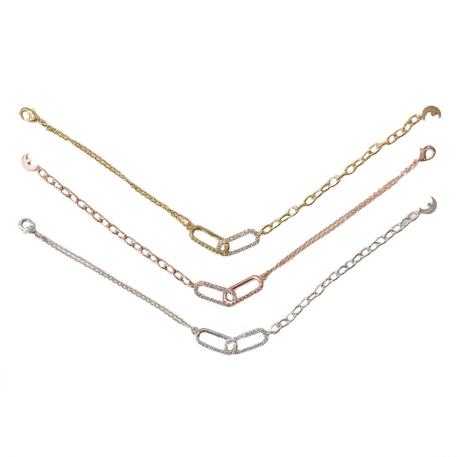 A trendy addition to your wrist stack, our Sparkle Mix Chain Link Bracelet will add some character and glimmer to your wrist all day long! Features a thin double chain on one side and a single thicker chain on the other side of the cubic zirconia paved links in the center. The perfect wrist accessory for the modern and stylish woman, it can be stacked with other Noellery bracelets and cuffs, or worn on its own for a simple touch of sophistication to any outfit!
