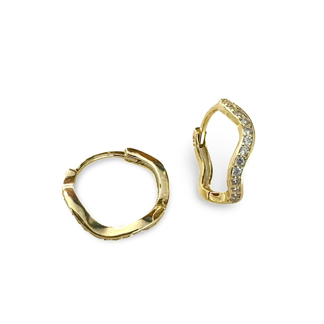 Adorn your lobe with a beautifully crafted pair of fun huggies today! Features a huggie hoop with a sparkly shaped design to give it a wavy look. For those with multiple piercings, these look great mixed with your ear stack.