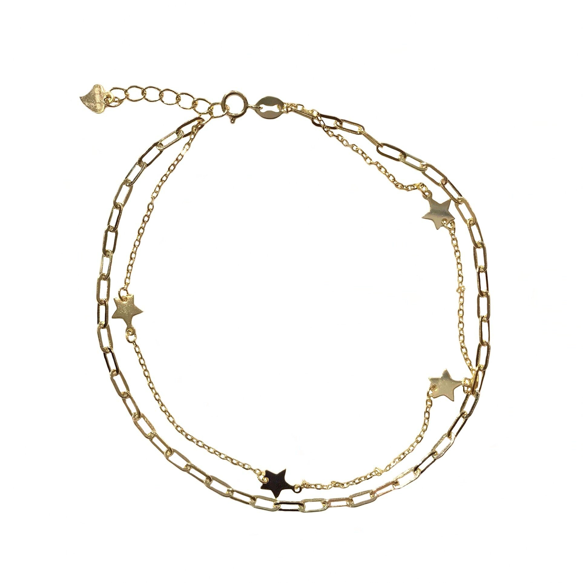 Our layered Star Chain Link Anklet is a dainty accessory that looks elegant when worn alone. This anklet will have you wrapped up with various outfits to combine together!