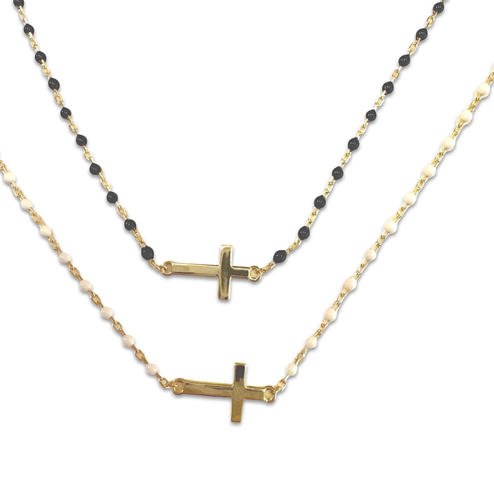 Wrap your wrist with our dainty Cross Color Bracelet. Features a fine chain patterned with a color of beads and a sideway cross. Looks great stacked with other Noellery bracelets, but looks just as lovely when worn on its own.