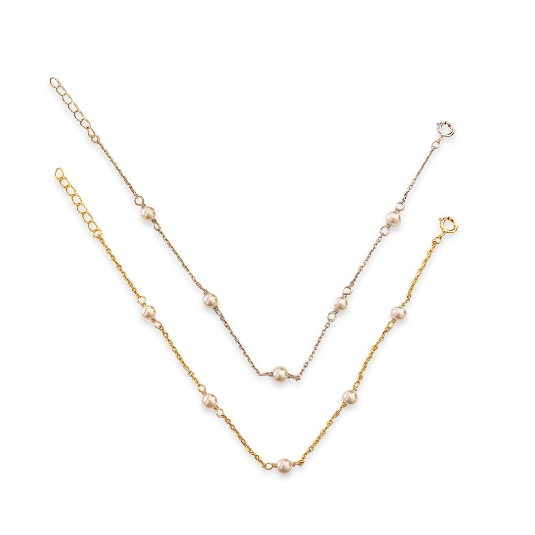 Wrap your wrist in elegance with our Sterling Silver Pearl Bracelet! Features a dainty sterling silver chain with five small pearl charms linked in. A beautiful bracelet that can be gifted to that special person for any occasion. Worn alone or layered with other Noellery bracelets, this pearl bracelet makes a great everyday accessory to match with any outfit!