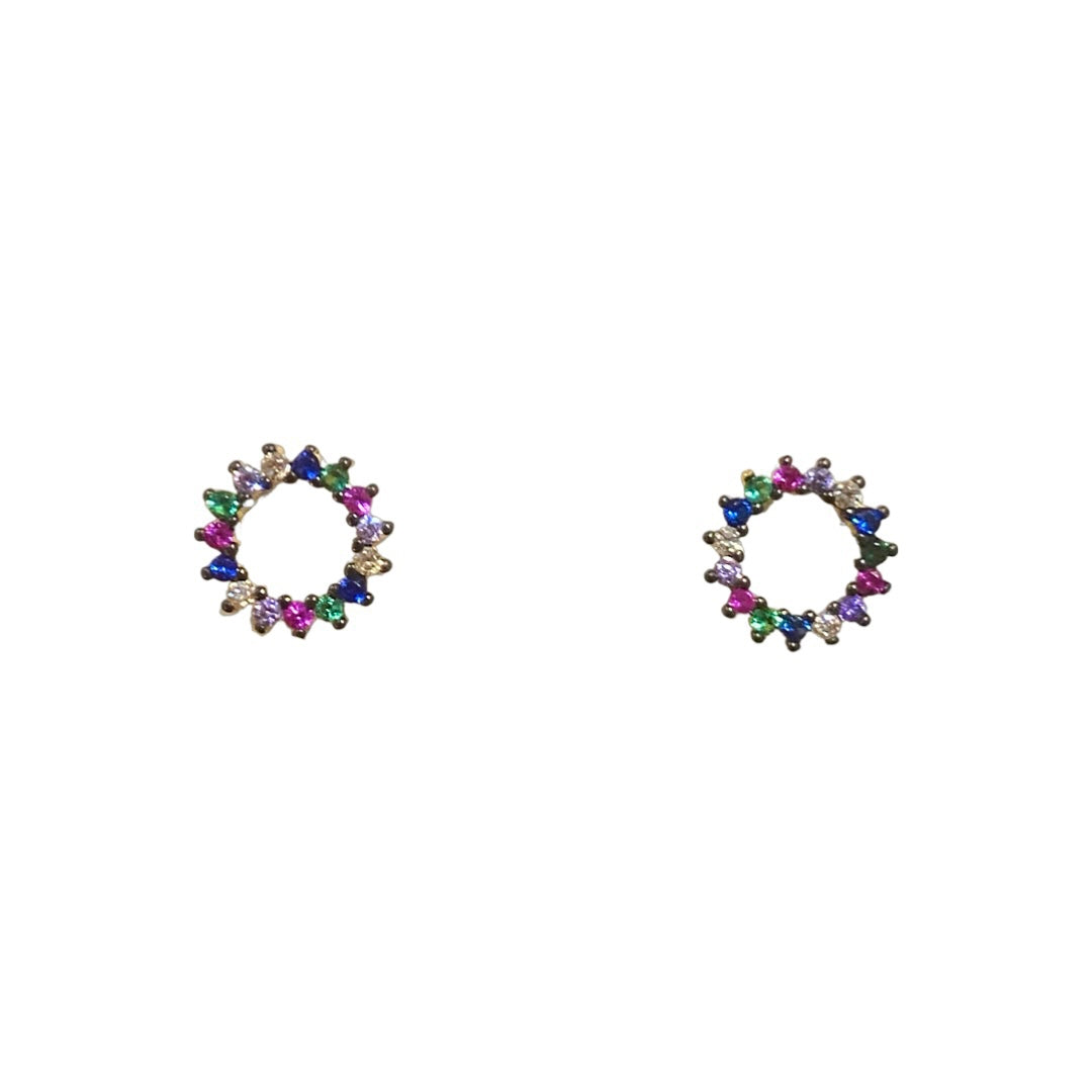 Brighten up your day and throw on a pair of our cute Sunny Circle Multi Studs! These circle outline studs features a rainbow of round, sparkling cubic zirconia stones all around, glimmering under the sunlight with each step you take! A cute everyday stud that can be worn alone or with other Noellery earrings to create the perfect earring stack!