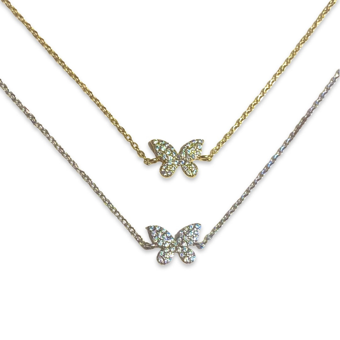 Let your wrist sparkle with our petite butterfly bracelet. Features a sweet butterfly pendant that is micropaved with clear cubic zirconia stones. Makes a great addition to your stack of bracelets, but equally as stunning when worn solo on its own. Butterflies represent hope, endurance, and change. Makes a thoughtful gift for your loved one on any occasion.