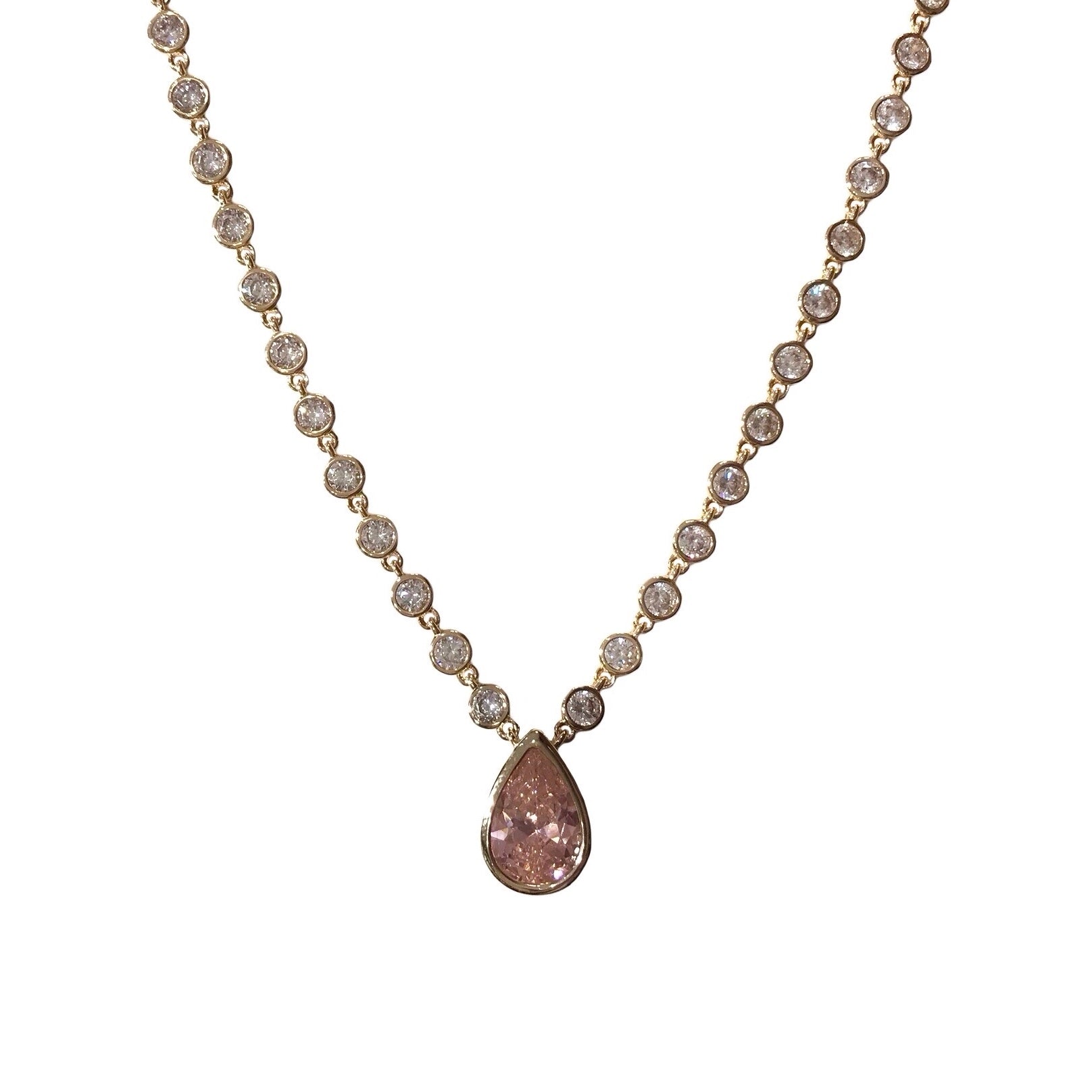 Slop on our Teardrop Bezel Tennis Necklace that features a channel of sparkly cubic zirconia bezel stones with a teardrop center stone that shines with every move. This necklace looks great with our Noellery earrings & bracelets. Adds a statement to your outfit!