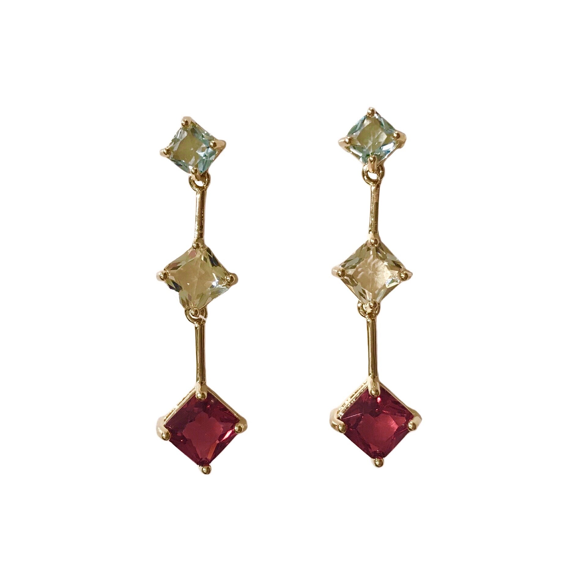A darling drop earring to compliment any outfit, slip on a pair of our classy Triple Square Drop Earrings today for some sparkling glam! Features three colored cubic zirconia stones that will drop from your ears and sway with your every step. The perfect pair of earrings to style up any casual or dressy outfit, wear them solo or stacked with other charming Noellery earrings!