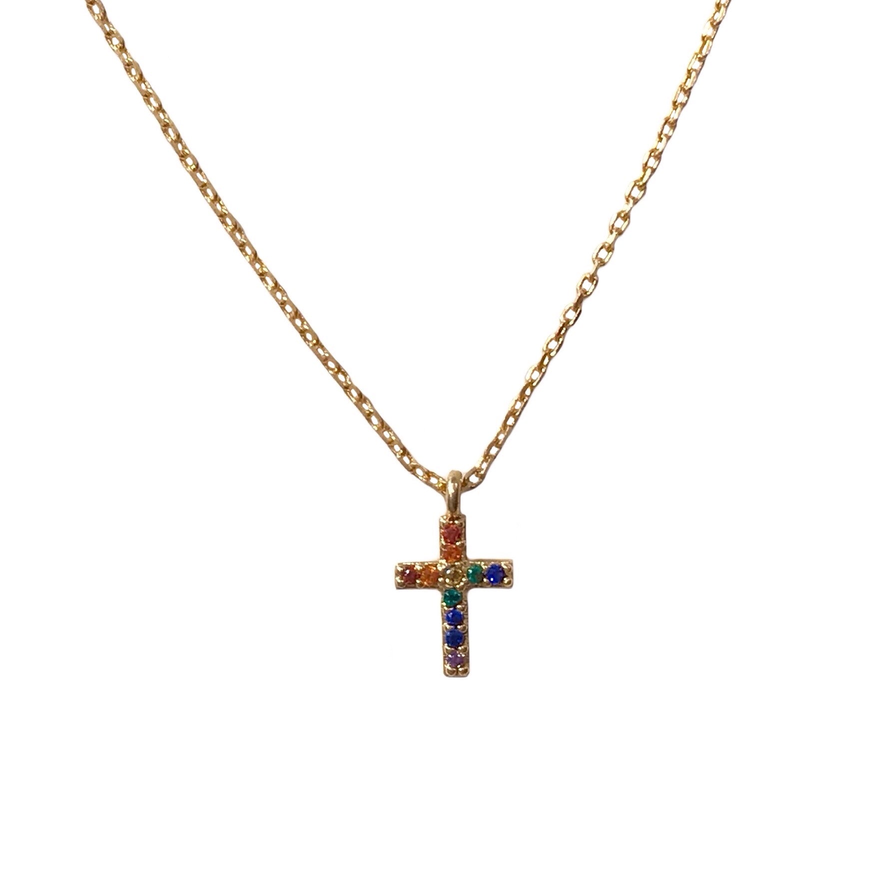 Beauty with flying colors, our Tiny Cross Rainbow Necklace is a dainty and comfortable everyday accessory. A thoughtful gesture for a loved one or friend, gift this necklace for baptism or other special occasions.