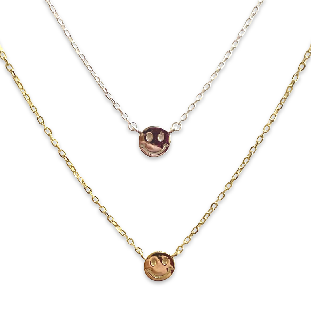 Gift our dainty Smile Necklace to that special someone in your life and watch them smile from ear to ear! Features a small smiley face pendant that hangs from a shiny gold plated over sterling silver chain. Brighten up your day even more by wearing this with other Noellery necklaces and chokers to create an everyday necklace layer!