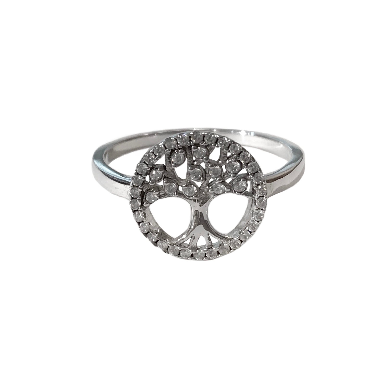 Stay grounded, strengthened, and keep to your faith with our Tree of Life Ring. Features a tree silhouette with the branches containing cubic zirconia stone bezels, along with the paved halo of cubic zirconia stones that frame it. This ring makes a great gift to anyone and can be a good everyday ring to add to your collection!