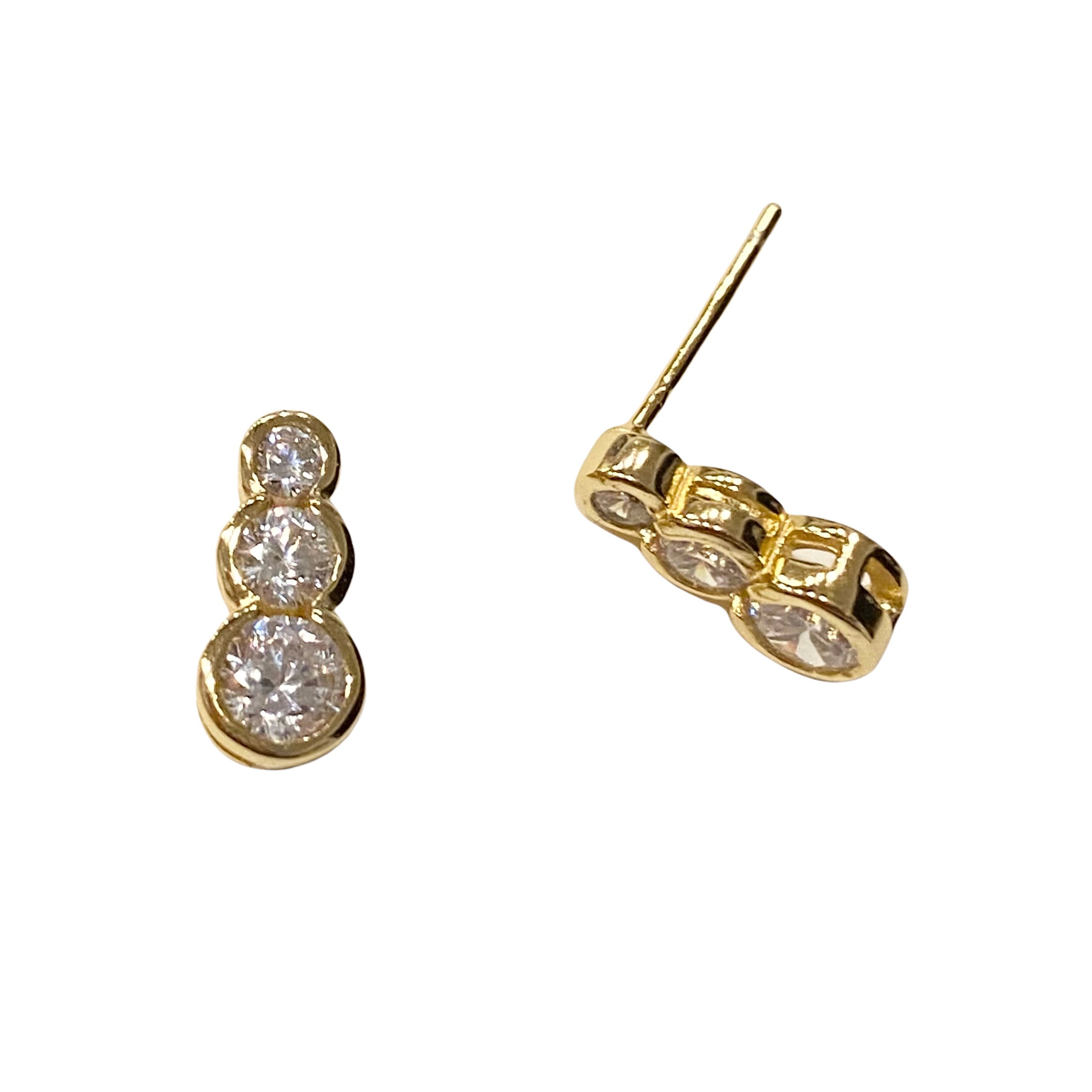 Sparkle with these dazzling Amy Triple CZ Studs! These studs feature three cubic zirconia stone bezels that goes from small to large. The smaller bezel will rest against your earlobe while the largest bezel will hang downwards. A great everyday stud that can be worn alone or stacked with other Noellery earrings.