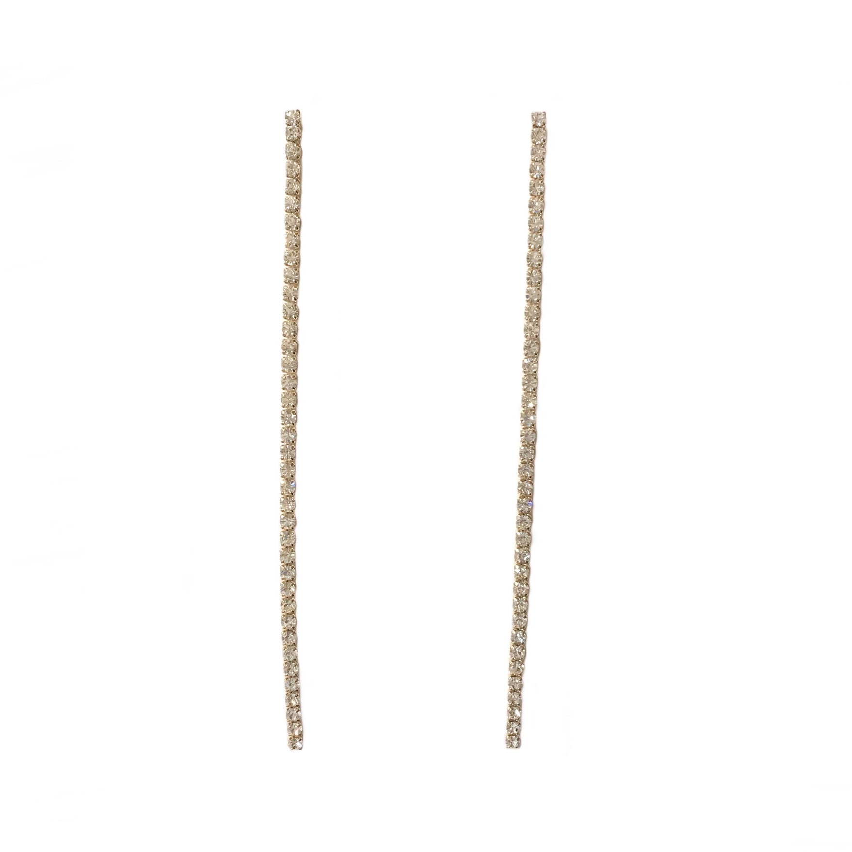 A row of sparkle that is both delicate and simple, throw on a pair of our Crysta Rhinestone Earrings to add a touch of dazzling shine to your ears! Features a row of rhinestones that will dangle and sway gently from your lobes. The perfect ear accessory that can be worn with a dressy or casual outfit. Style it with other Noellery earrings and accessories to complete your look.