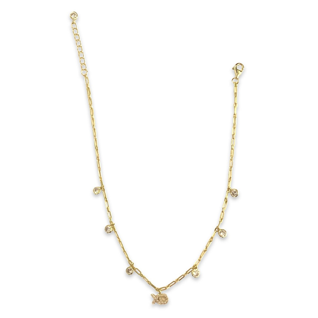 Step out in style with our must have XO charm anklet. Features a fine gold link chain that wraps on your foot comfortably. Dangles with 6 bezel charms and a XO charm that is paved with sparkly clear cubic zirconia stones. Let your ankles do the talking with Noellery today.